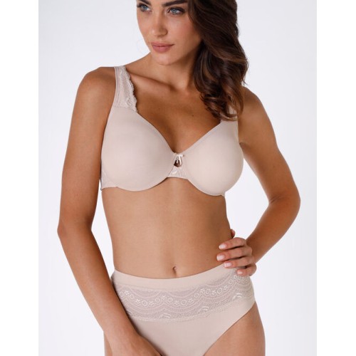 Essere alla ricerca di un reggiseno effetto minimizer non vuol dire dover rinunciare allo stile! Grazie a questo modello posso indossare un capo che mi assicura tutto ciò che desidero: i dettagli femminili del pizzo, comodità e delicatezza a contatto con la pelle, forme modellate e visibilmente compatte. Il colore skin lo rende discreto e invisibile sotto lievi trasparenze.